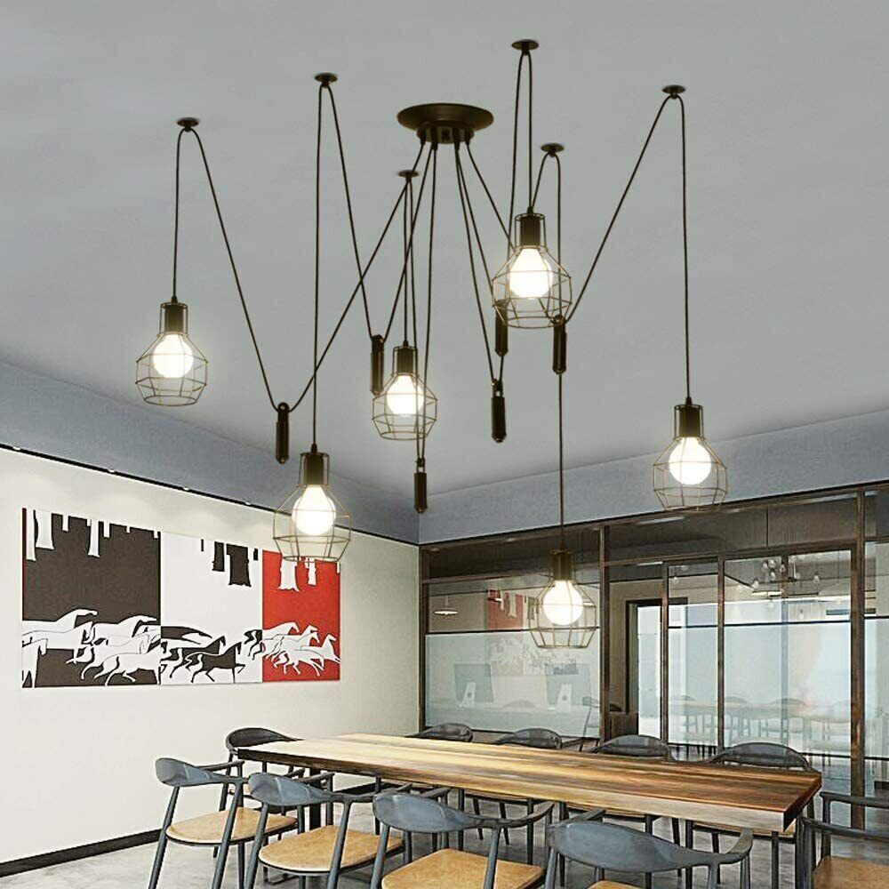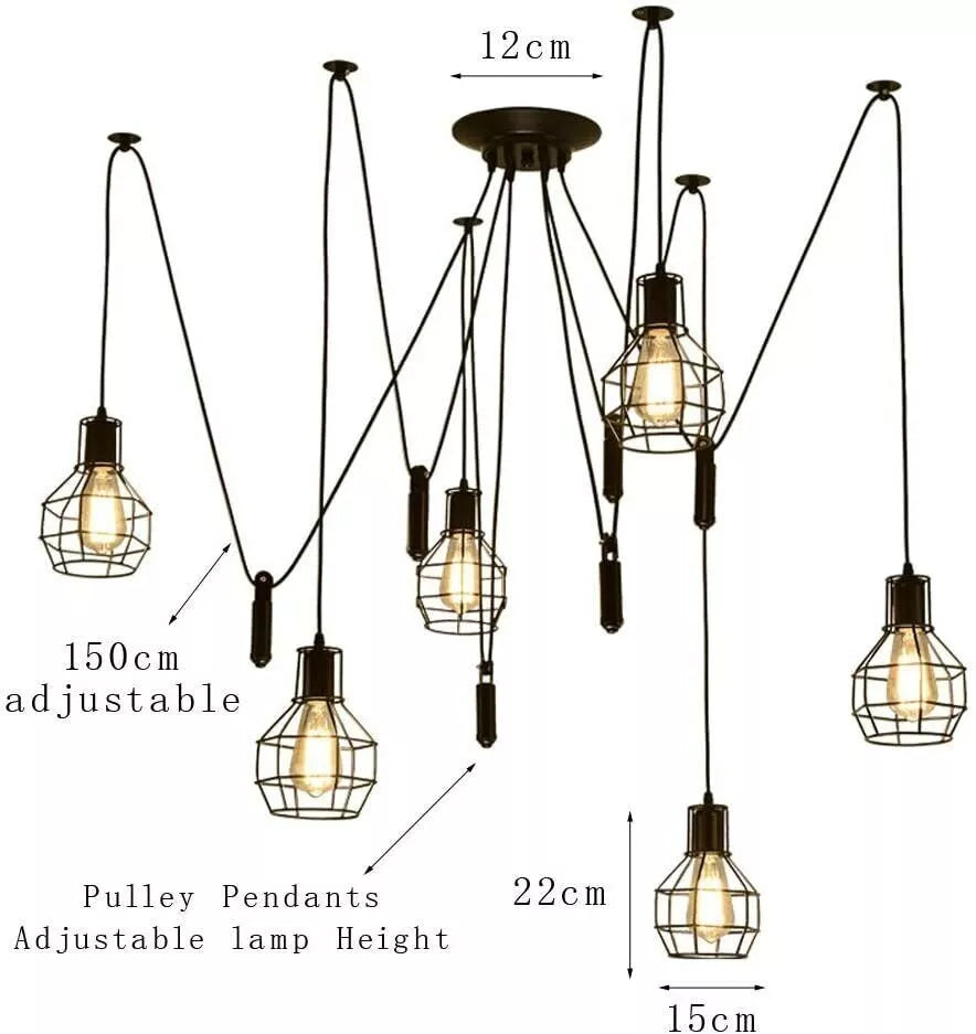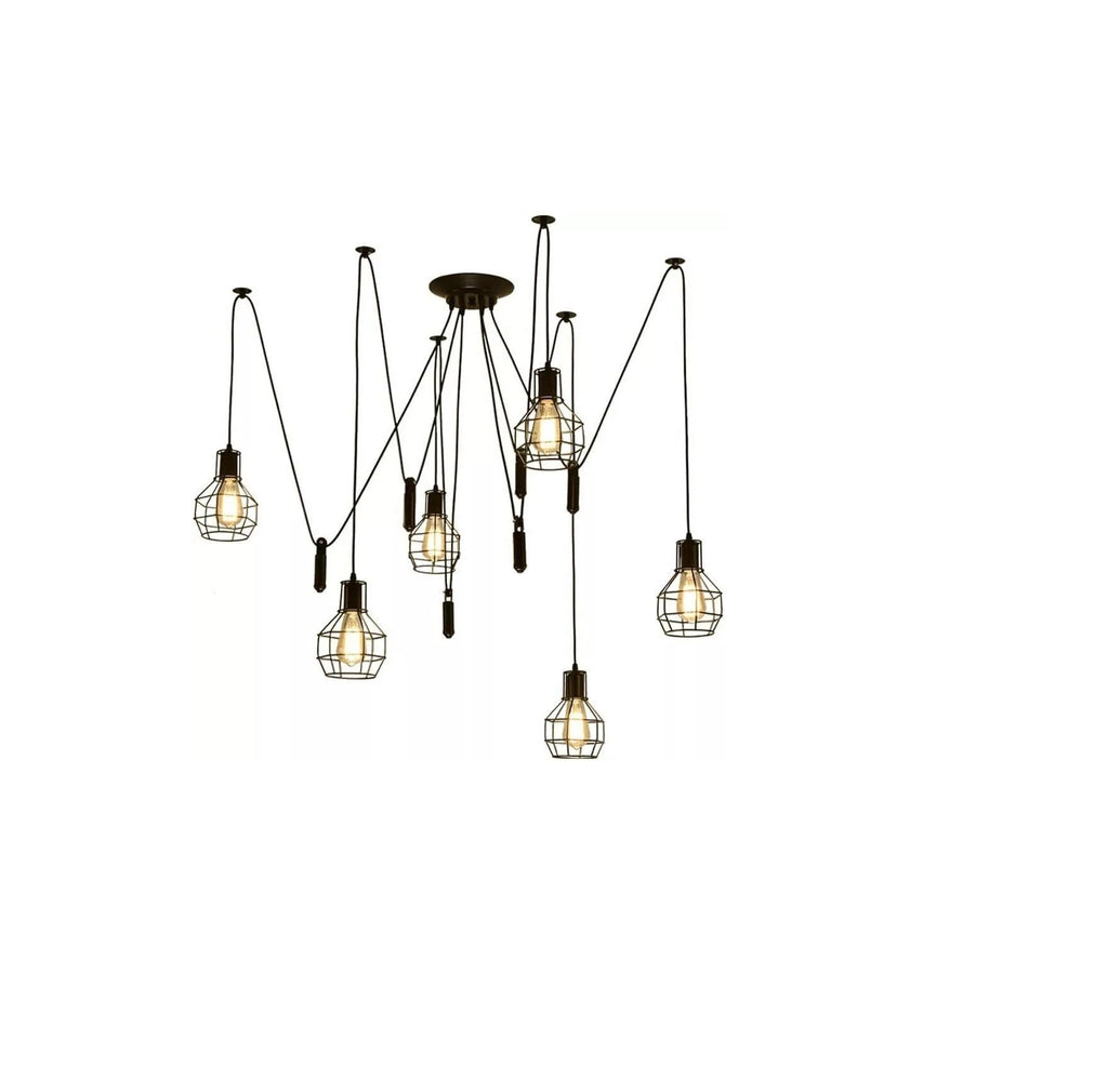 Upgrade your space with this Vintage Industrial 6-Way Chandelier, a bold statement piece with a spider-style design and cage bulb holders. Perfect for modern, rustic, or industrial interiors, it adds warmth and character to any room. Ideal for homes, bars, cafés, and lofts.