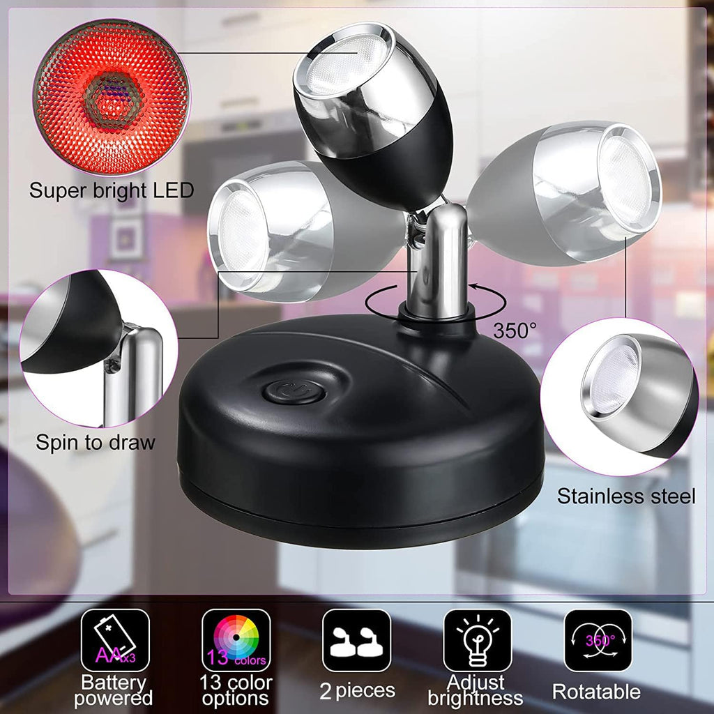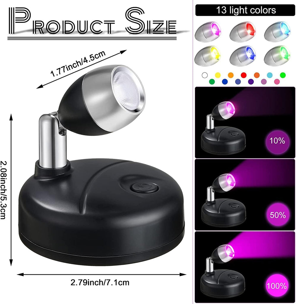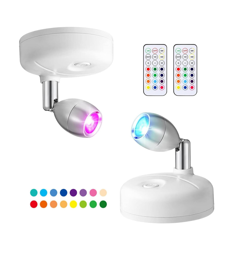 Improve any room with the versatility and style of these wireless RGB LED spotlights. Perfect for accentuating your artwork, bookshelves, and home decor, these mini spotlights offer convenient remote control and customizable settings for a personalized lighting experience.